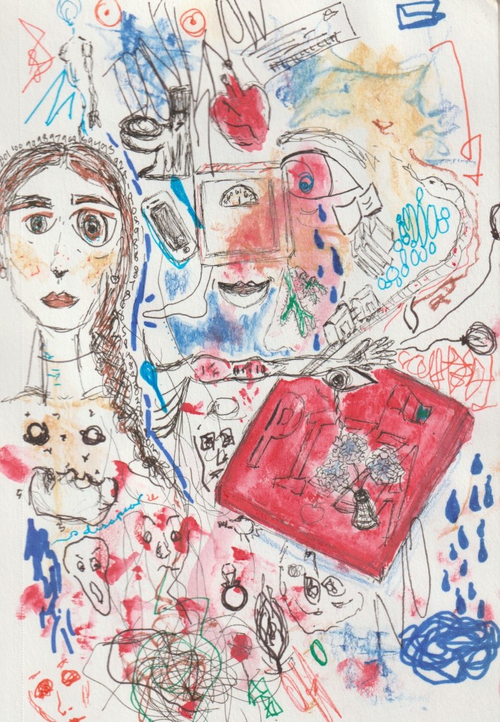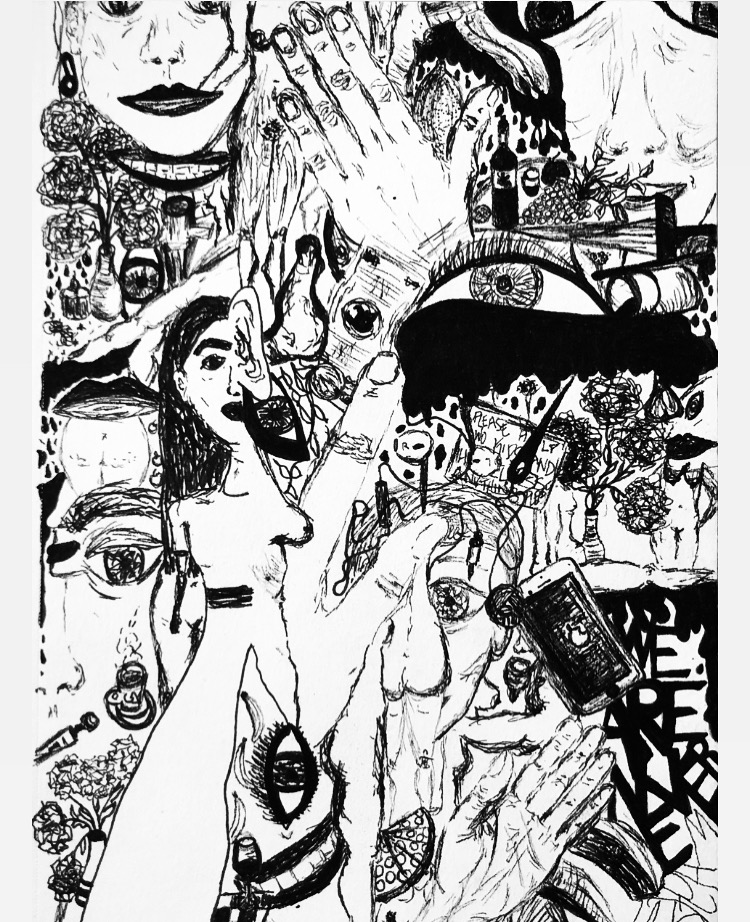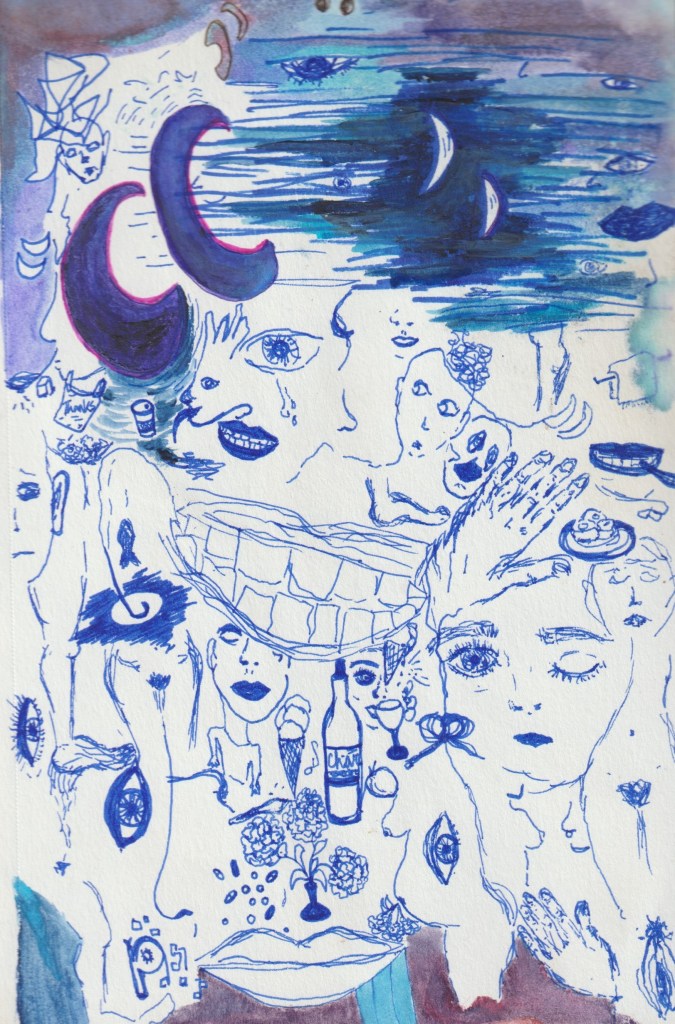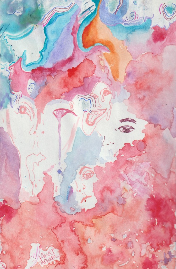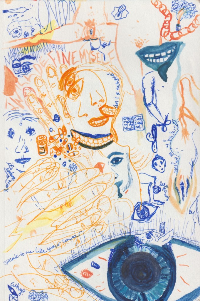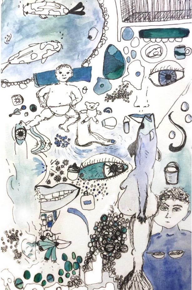Using ink, crayon, water color, and pastel, these works seek to express the pains and pleasures of embodiment. Some grapple with death and dying, others with memory, childhood, and the role of a caretaker. They niether seek to shock nor to attend to the healing of the viewer, rather they use banal and pedestrian images to distort perspective and loosen the edges of body and object.