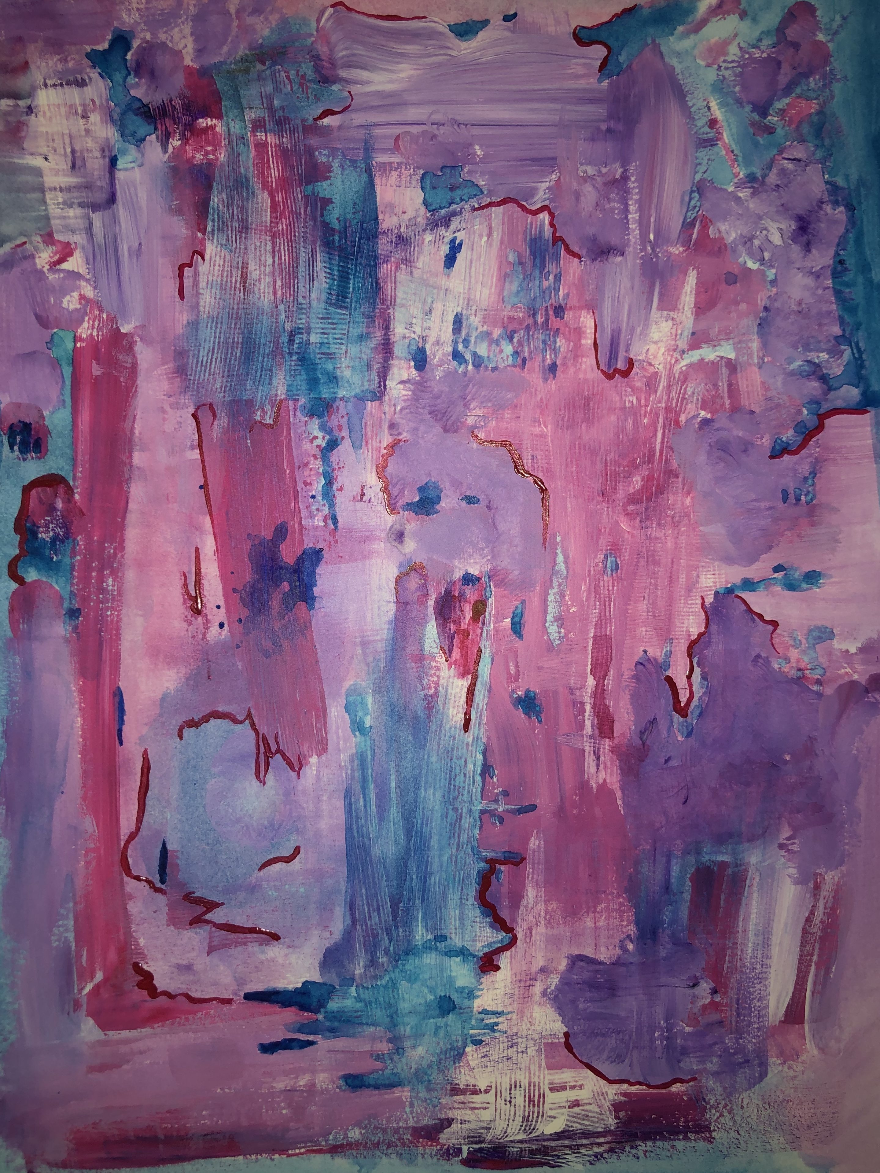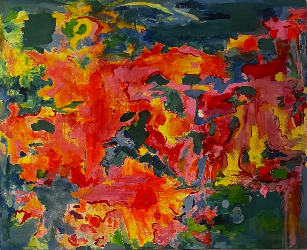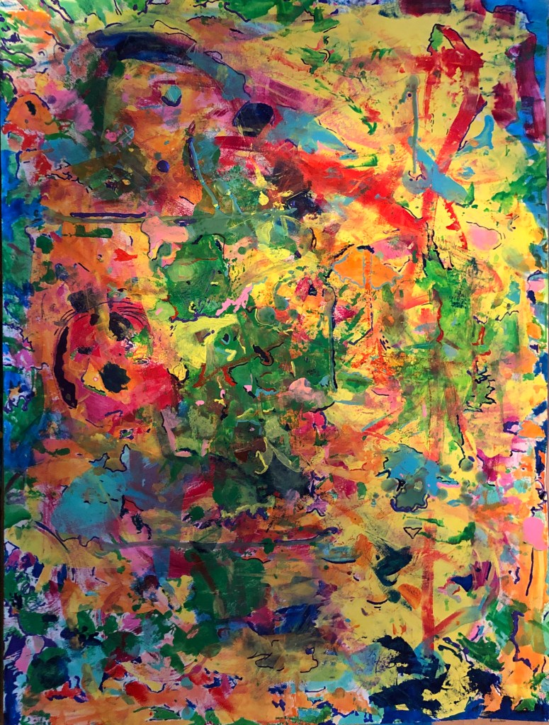 “Other People’s Paintings” is a series of works on found and abandoned canvas. Beneath each abstraction was a work— in a variety fo mediums—that was thrown away, left on the side of the road, or discarded after a yard sale. Rather than priming each piece with a singular color, these works use aspects of the original paintings’ shapes, colors, and textures to recontextualize the material into largescale, bold swathes of movement.